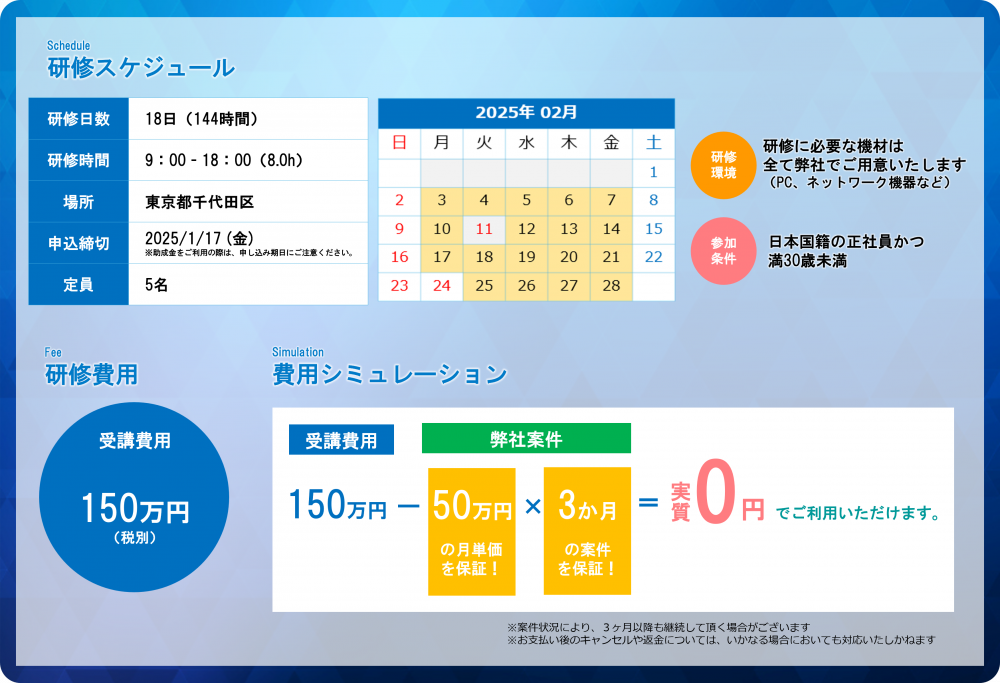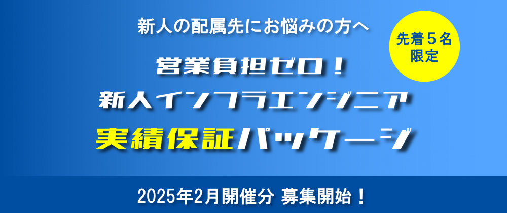 毎回ご好評頂いております「新人インフラエンジニア 実績保証パッケージ」2025年2月開催分について、先着5名限定で申込受付を開始いたしました。
