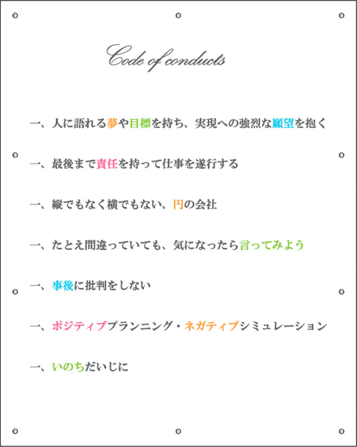 GFDの第二創業期としてオフィスを移転し、創業以来初めての新卒採用をはじめるなどたくさんの社員が増えた時期です。社員が増えることで、会社組織としてのあり方、社員とのコミュニケーション方法、評価基準の策定、企業理念の明文化など上げればきりがないほど足らないものが多く、人材マネジメントの大切さを学んだ時期でもあります。 また、社員全員で行動指針を策定したのも丁度この時期でした。GFDらしさとはなにか?GFDとしての正しい価値基準とはどのようなものか?をベースに社員全員で作成したのですが、この行動指針そのものを社員全員で決めるという辺りが、GFDらしさでありGFDの強みと実感した瞬間でもありました。